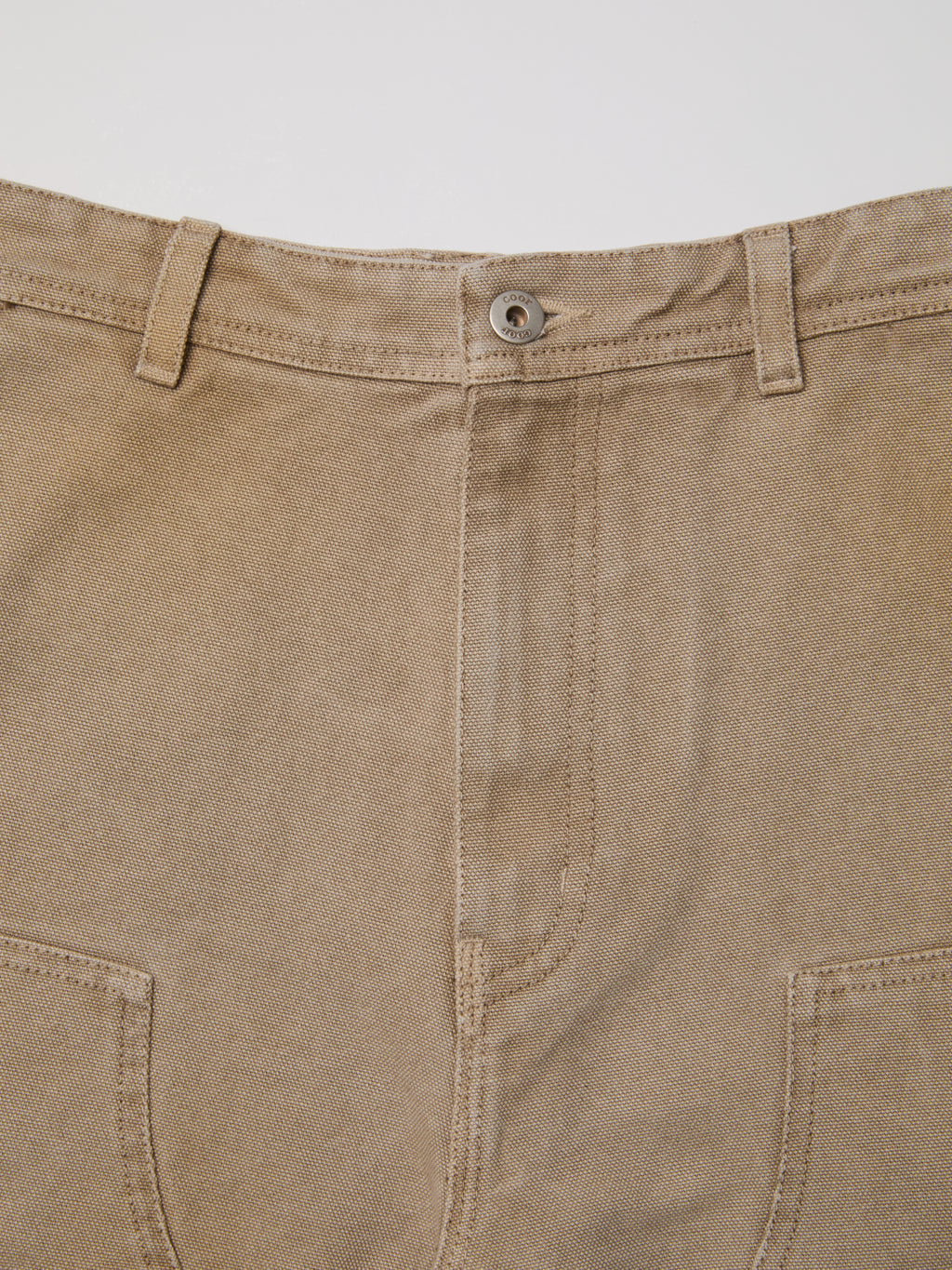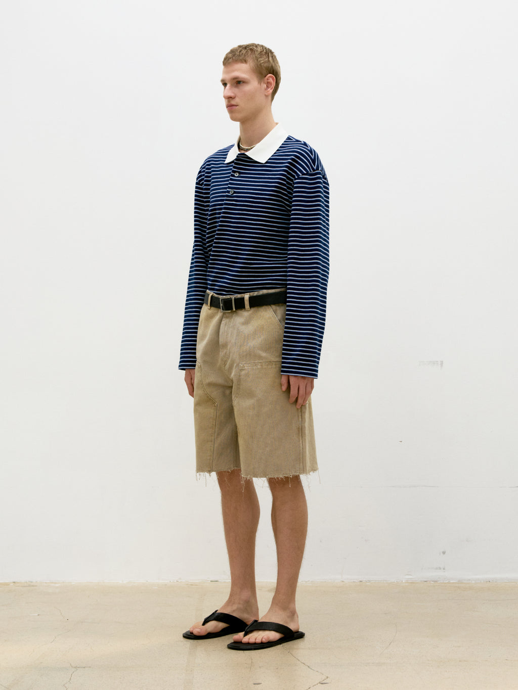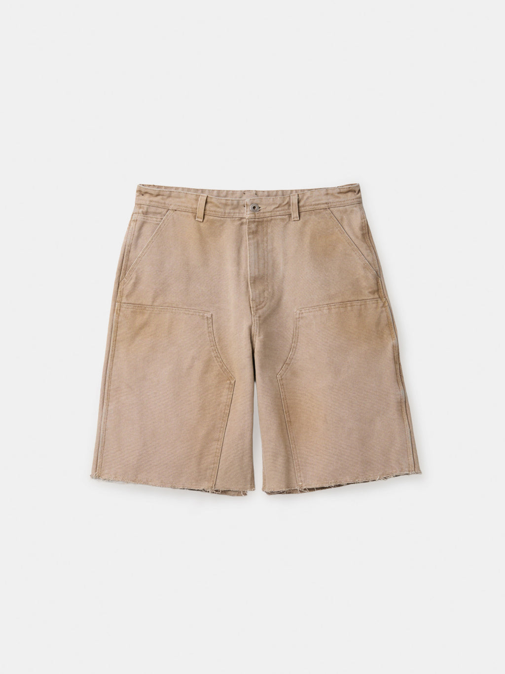 Bermuda-bukser med karakter. Den vintage-agtige tekstur er opnået gennem garment dyeing efterfulgt af spray washing – en proces der giver hvert par sit eget unikke udtryk. Semi-wide fit sidder afslappet uden at være for løst, og double knee-detaljen med det skrå lommesnit gør dem til noget mere end bare en bermuda.