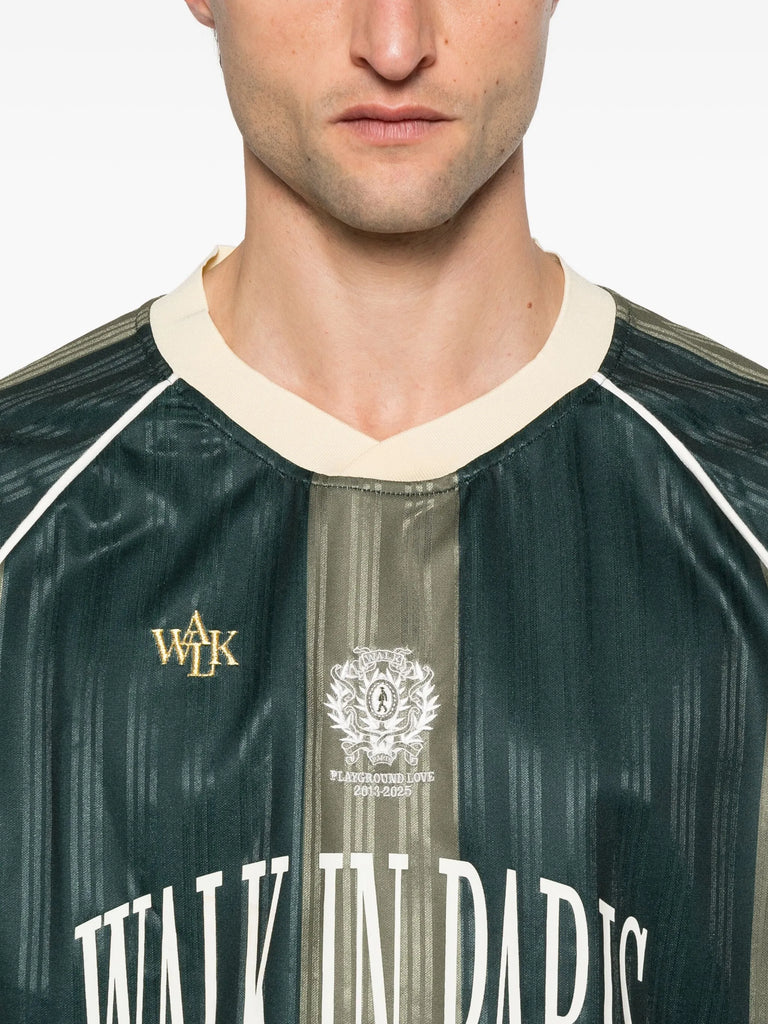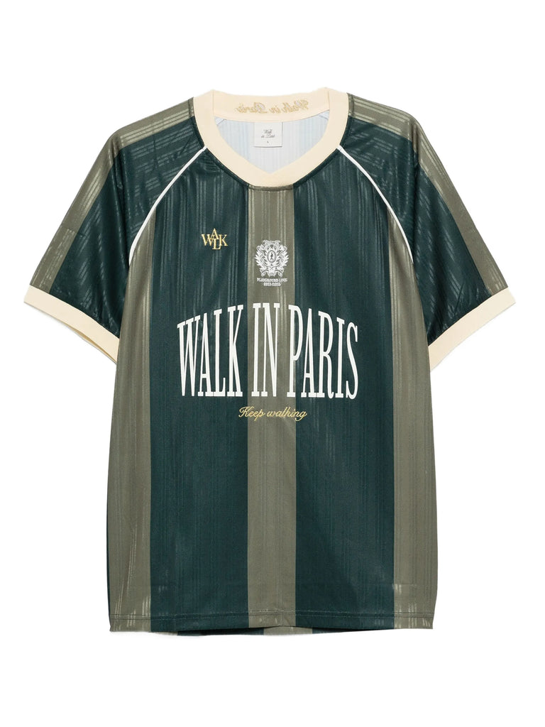 Her hos Hooha elsker vi klassisk fodbold-æstetik - og denne grønne jersey fra Walk In Paris leverer præcis det. Med de ikoniske lodrette striber og den lækre jersey-kvalitet får du et stykke sporty stil, der fungerer både på banen og i byen. Perfekt til den casual garderobe, hvor komfort og cool udtryk går hånd i hånd.