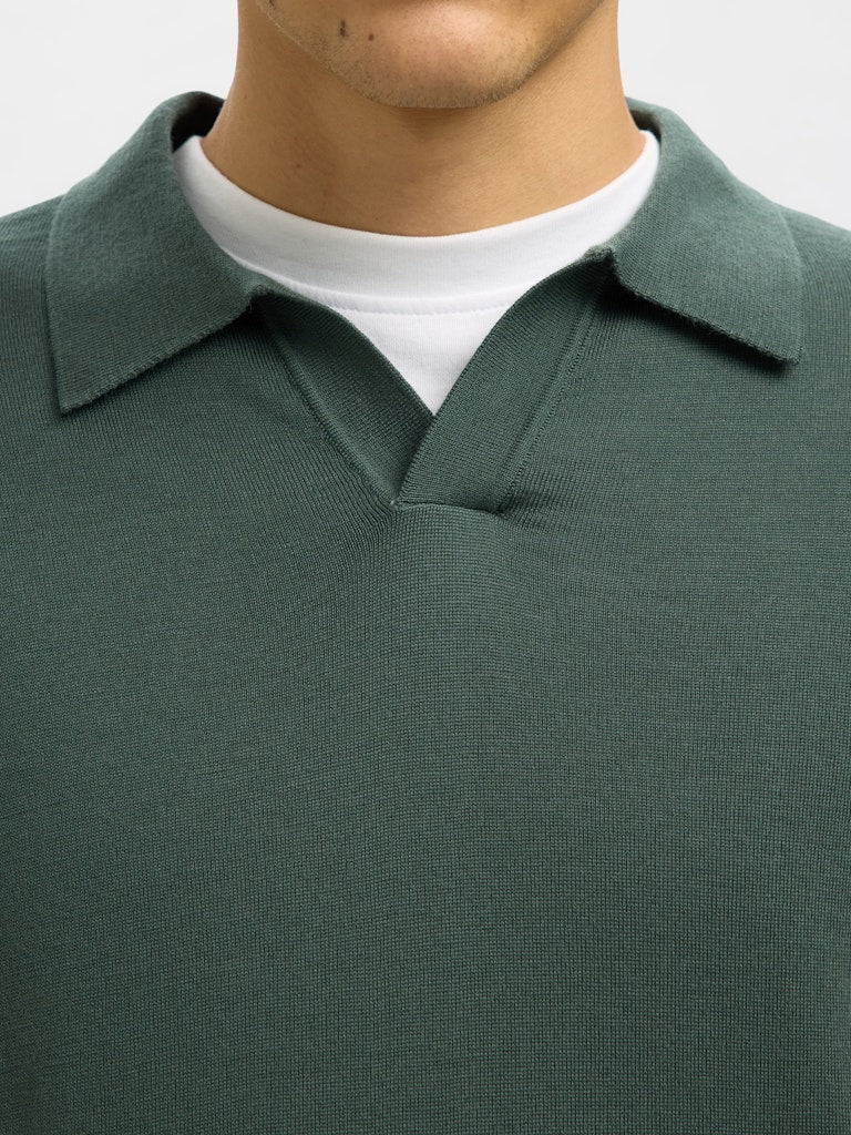 Tray Open Knit Polo Deep Forest