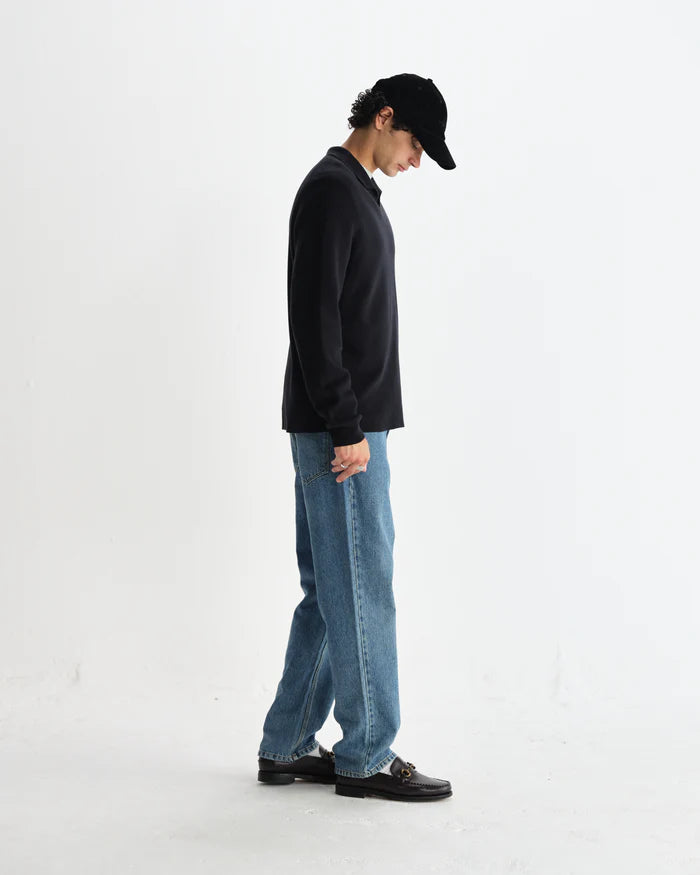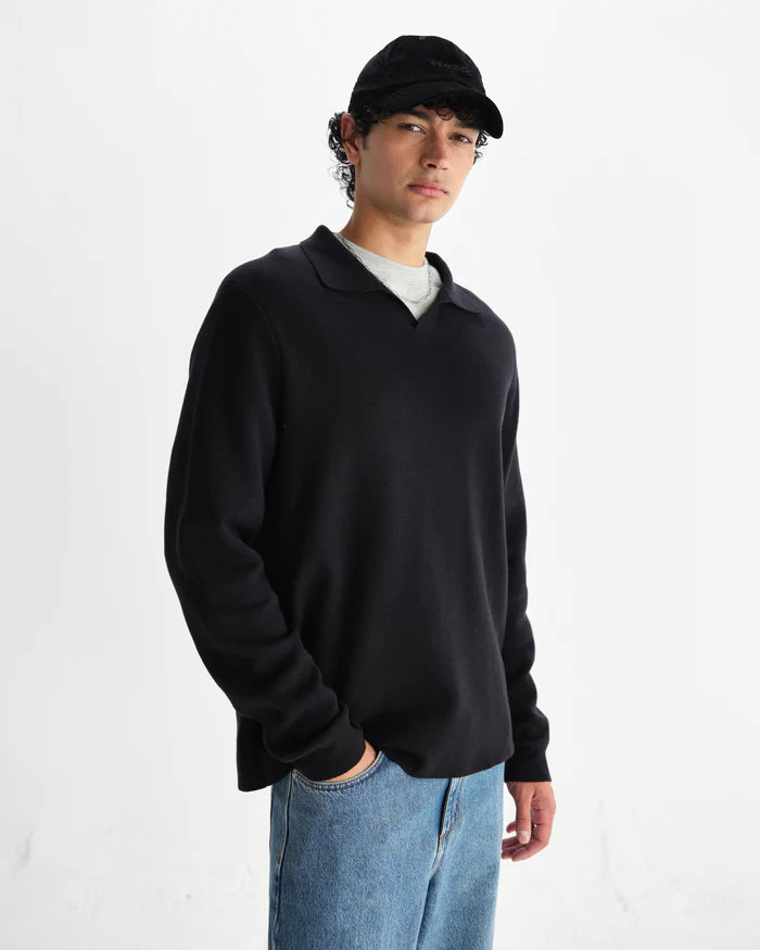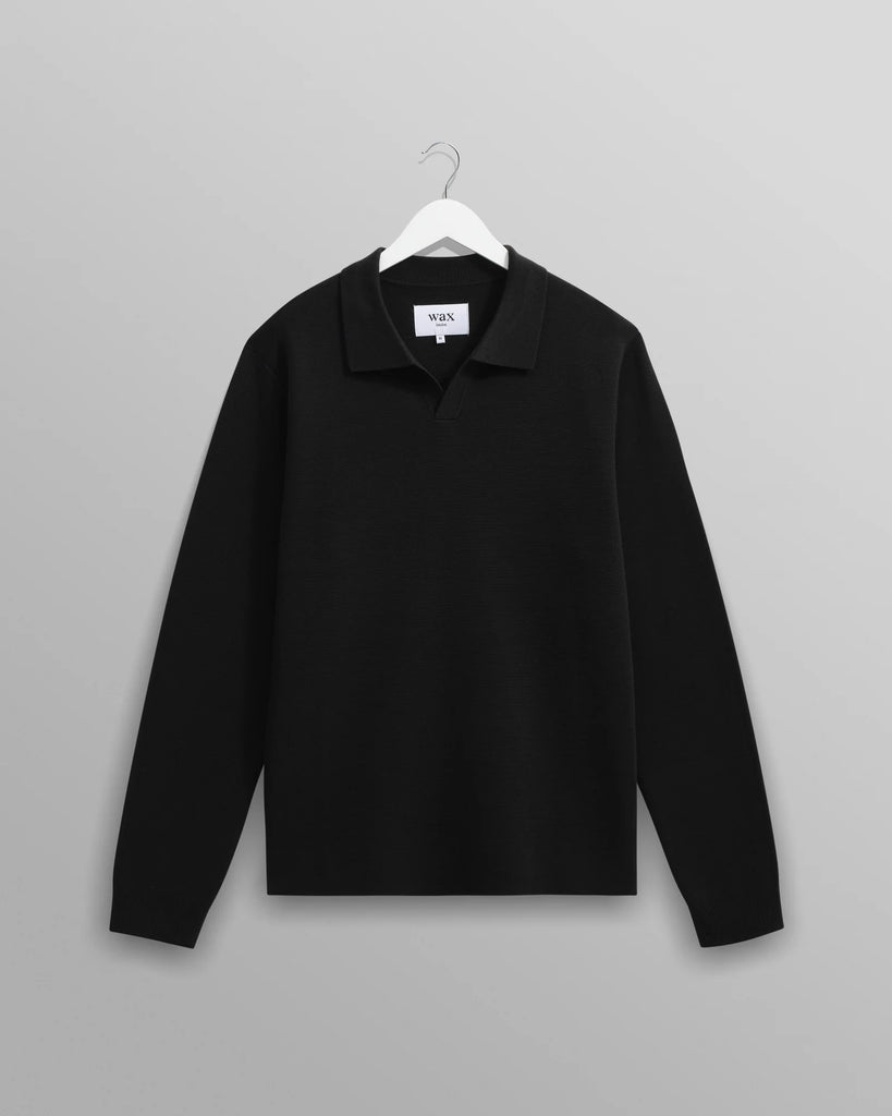 Denne Carter Open Collar Polo i klassisk sort fra Wax London er det perfekte mix af komfort og stil. Den åbne krave giver et afslappet, men sofistikeret look der fungerer til både hverdagen og weekenden.