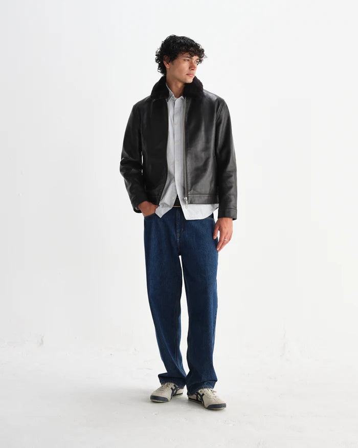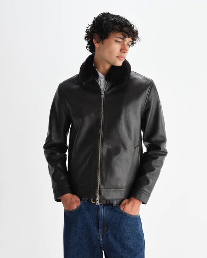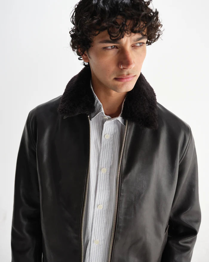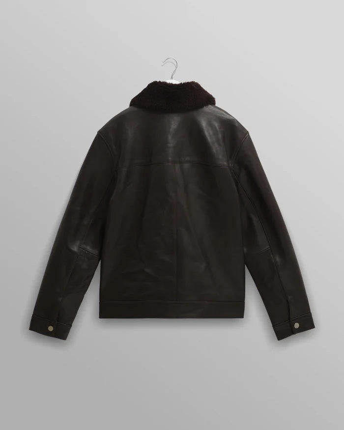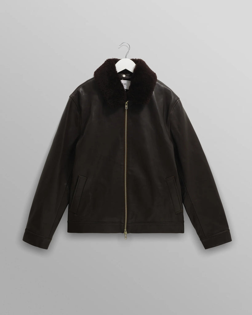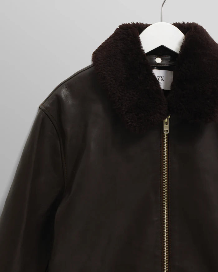 Denne Kendal Flight Leather jakke i mørk brun fra Wax London er det perfekte mix af rå stil og tidløs elegance. Den klassiske flight jacket-silhuet giver et cool, afslappet look der fungerer til både hverdagen og weekenden.