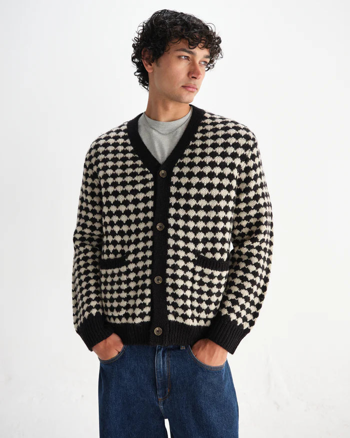 Oplev den perfekte kombination af komfort og stil med denne eksklusive Walker Cardigan fra Wax London. Den unikke bubble knit-struktur i sort og ecru skaber et moderne, tekstureret look der passer perfekt til både hverdags- og festbrug.