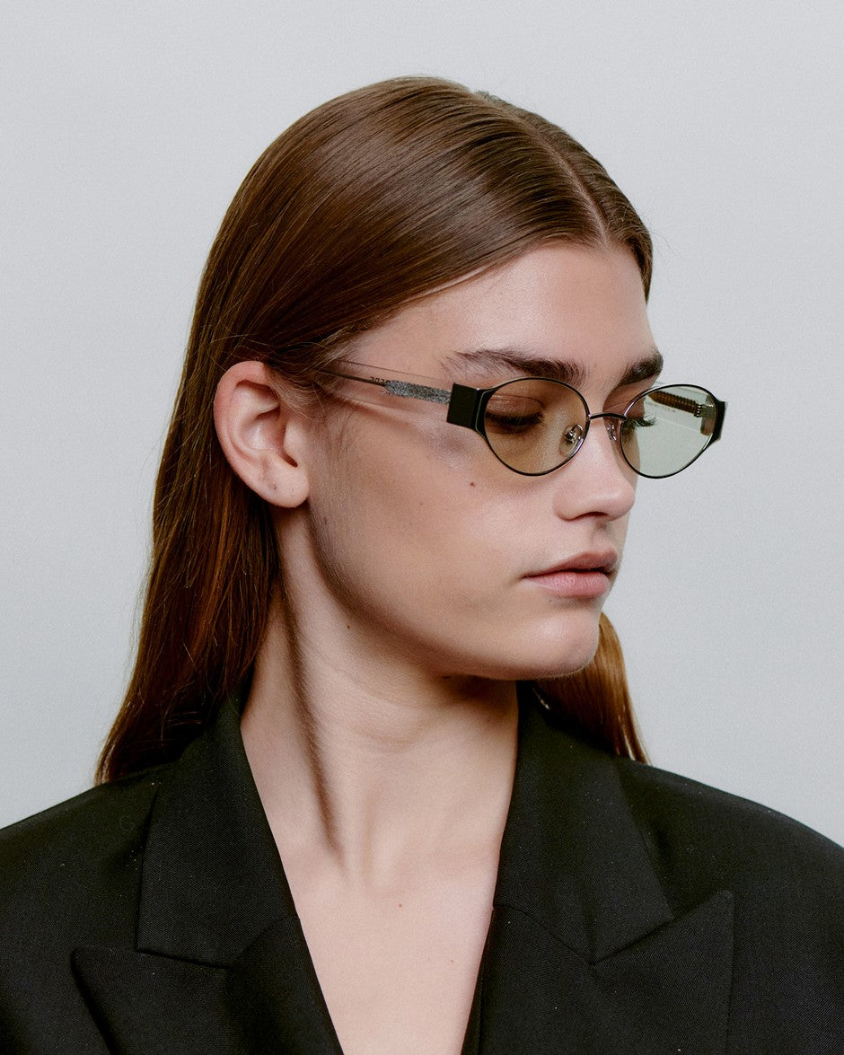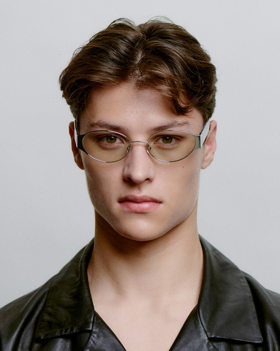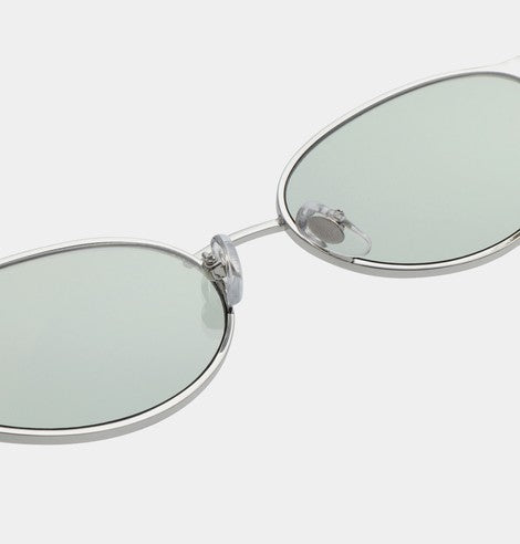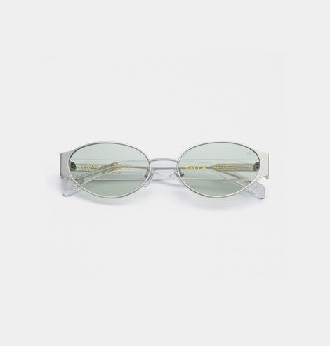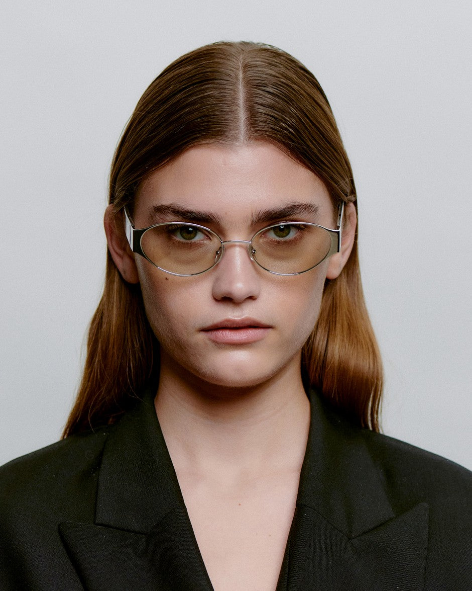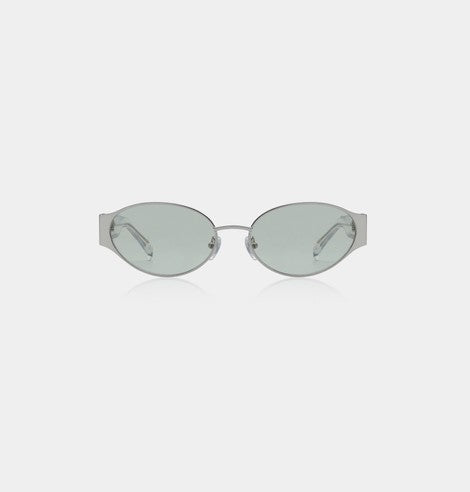 Her hos Hooha værdsætter vi solbriller, der kombinerer retro-charme med moderne elegance. Bella i silver crystal er en kompakt solbrille med oval 90'er-attitude og en let cat-eye-fortolkning, der giver et feminint, skarpt udtryk i et lille format.