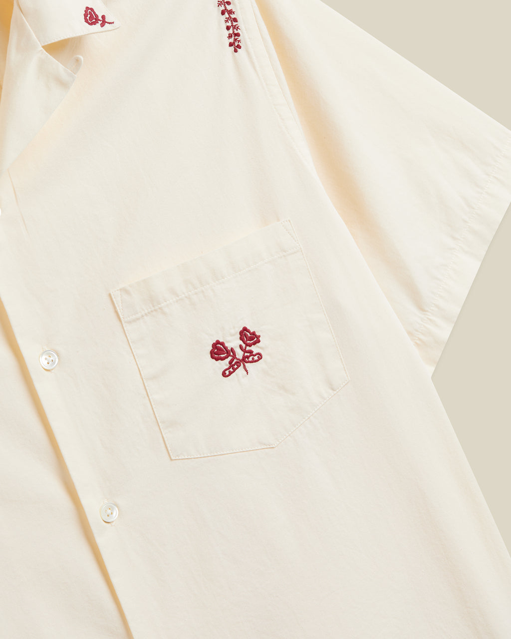 Når sommeren banker på, skal skjorten bare sidde rigtigt – og her hos Hooha sætter vi pris på de små detaljer, der gør en forskel. Portuguese Flannel's kortærmede skjorte i lys sandfarve får et unikt og raffineret udtryk med sine små broderede detaljer. Det er den type skjorte, der fungerer til det meste – fra afslappede weekender til sommeraftener, hvor du vil have noget på, der ser godt ud uden at være for meget. Den lyse sandfarve er nem at style og passer til det meste, mens de broderede detaljer tilføjer en ekstra dimension.