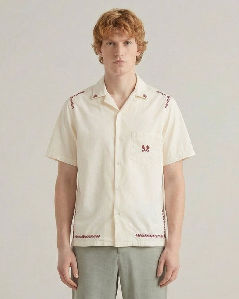 Når sommeren banker på, skal skjorten bare sidde rigtigt – og her hos Hooha sætter vi pris på de små detaljer, der gør en forskel. Portuguese Flannel's kortærmede skjorte i lys sandfarve er noget så lækkert med sine små broderede detaljer, der giver skjorten et unikt og raffineret udtryk. Det er den type skjorte, der fungerer til det meste – fra afslappede weekender til sommeraftener, hvor du vil have noget på, der ser godt ud uden at være for meget. Den lyse sandfarve er nem at style og passer til det meste, mens de broderede detaljer tilføjer en ekstra dimension.