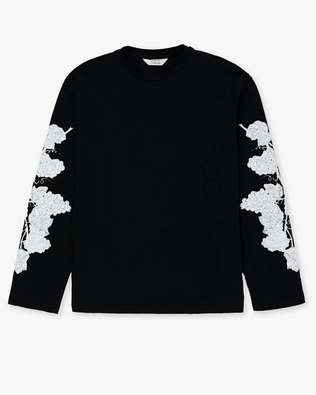 En trofast følgesvend i garderoben. Affirm er Libertine Libertines stabile langtærmede tee i et generøst fit og mellemtung kvalitet – skåret i blødt, børstet økologisk bomuld, der føles godt mod huden. Det trykte vingren-motiv på ærmerne giver den et subtilt grafisk udtryk, der løfter den over den gennemsnitlige hverdagstrøje. Passer normalt i størrelsen.
