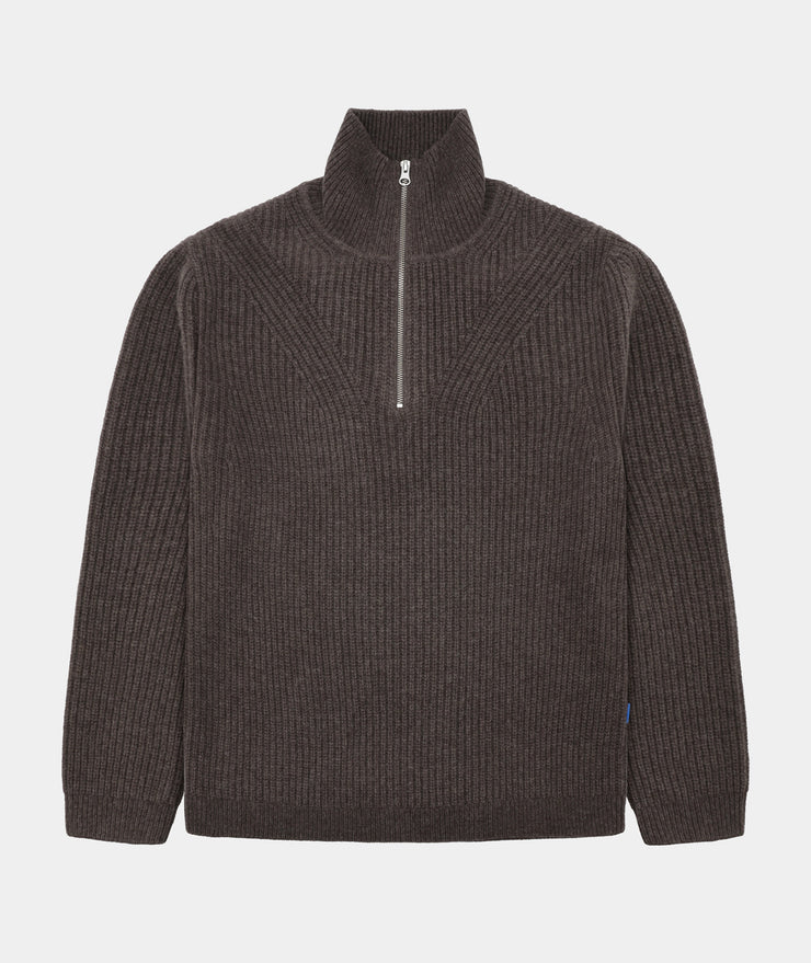 Half Zip Wool Knit Dark Taupe Melange